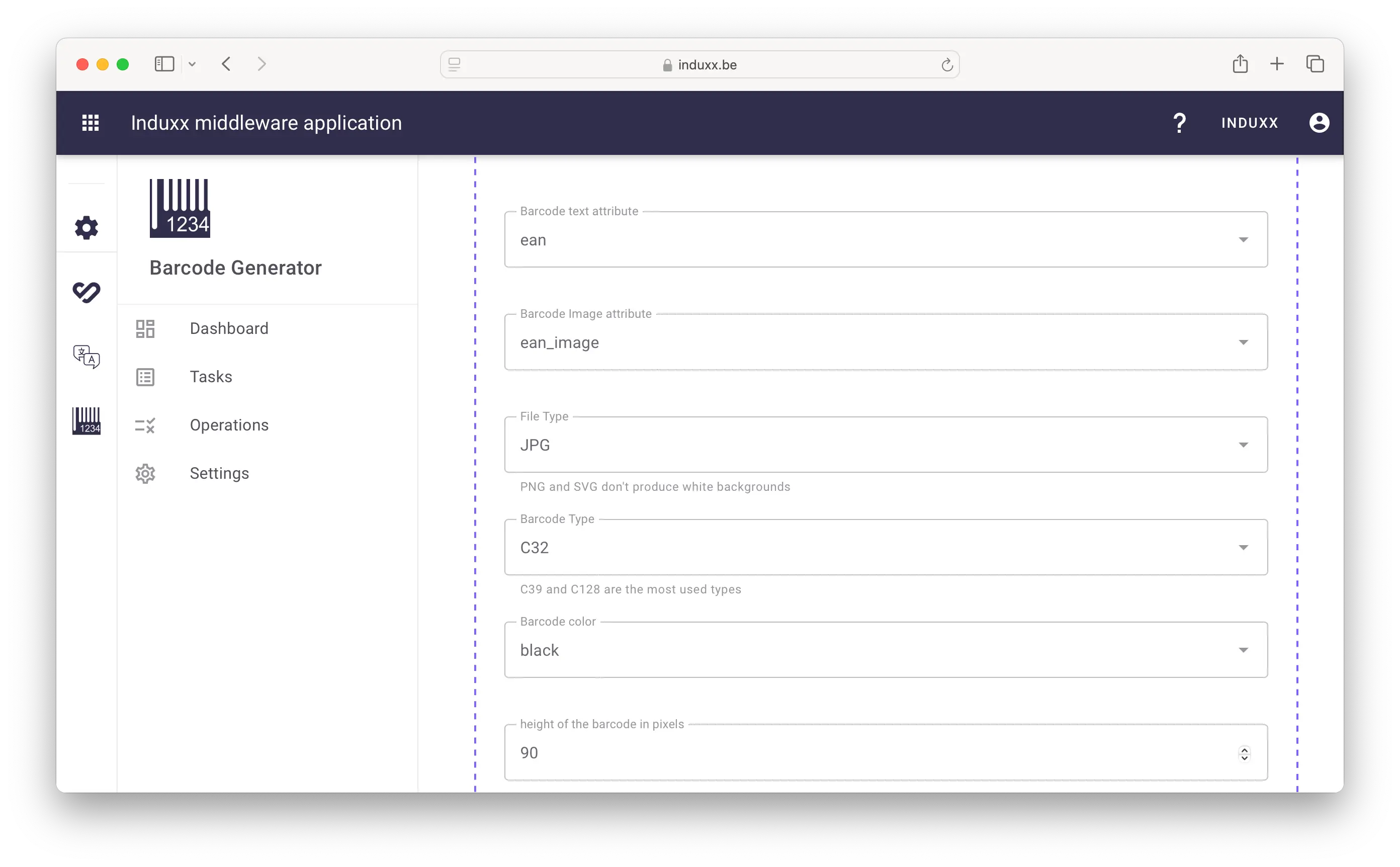 De Barcode generator app biedt een gebruiksvriendelijke interface waarin je kunt aangeven welk Akeneo-attribuut als bron dient en waar de gegenereerde afbeelding moet worden opgeslagen (in een afbeeldingsattribuut of assetcollectie). Dankzij een flexibel takensysteem kun je meerdere configuraties instellen en plannen, zodat periodiek gecontroleerd wordt waar barcodes of QR-codes aangemaakt moeten worden.