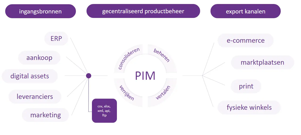 - Doel: Productinformatie efficiënt delen en synchroniseren over alle verkoop- en marketingkanalen.